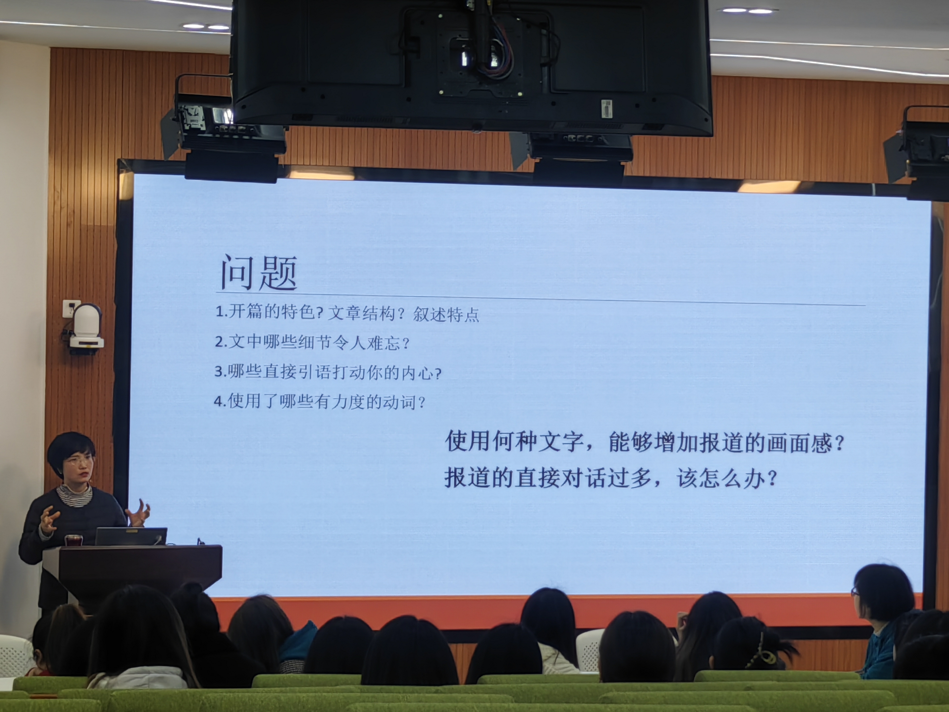 在持续一周的公开课教学活动中,共组织四次公开课,实现汉语言文学、广播电视学、广播电视编导和汉语国际教育四个专业全覆盖。3月7日下午,沈成菊老师率先展示了第一堂精彩的《新闻专题报道策划》公开课,杨波院长、教学督导郑颖、广播电视学专业老师和学院近两年新进教师参与了听课、议课、评课活动。