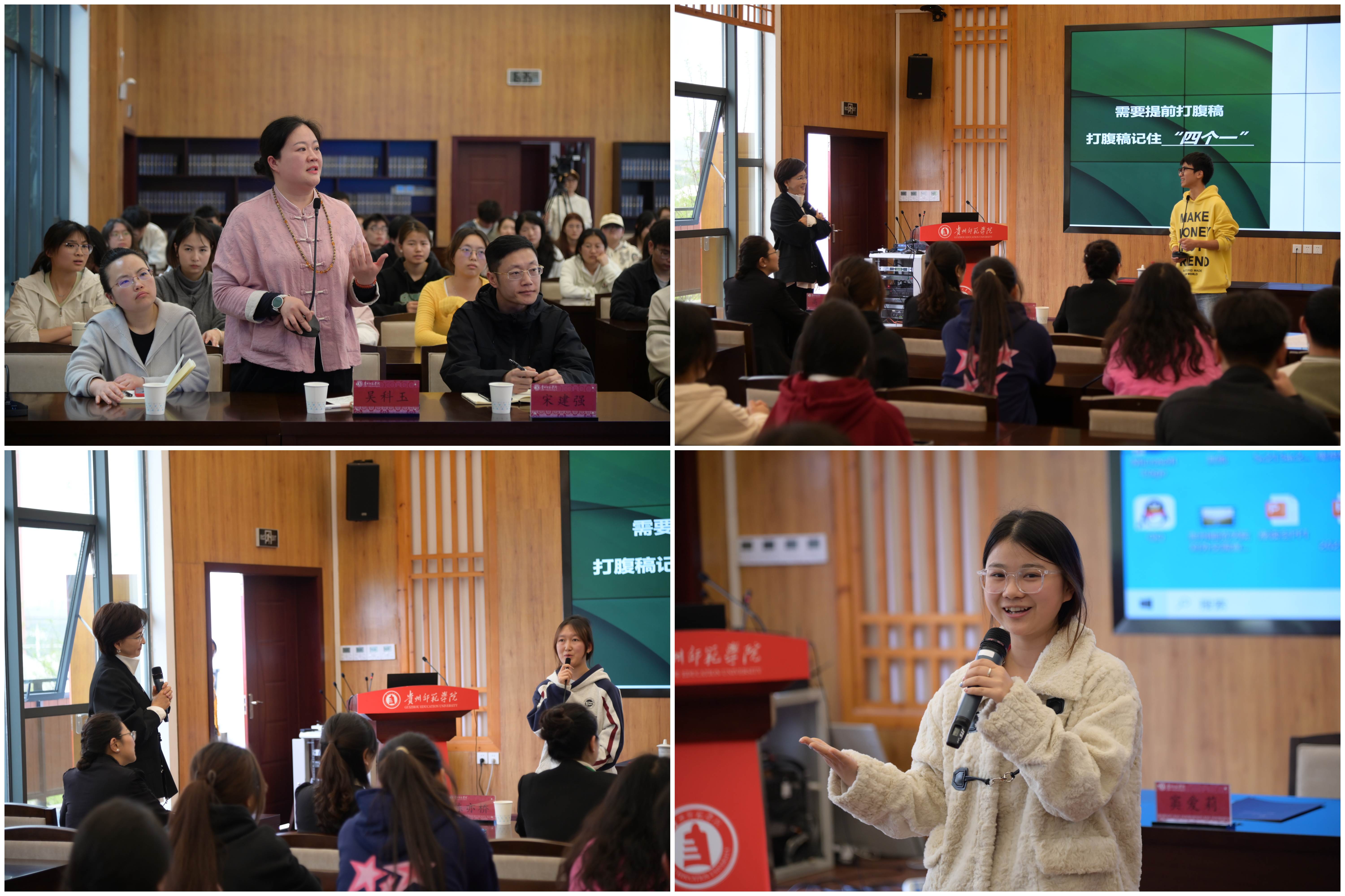 作为深耕播音主持领域的资深媒体人,窦爱莉以深厚的专业积淀和生动的语言艺术,围绕“如何更好地表达”展开深入讲解,她以日常生活情景为例,将理论与实践巧妙融合,剖析了日常表达的艺术与技巧;在表达的“方法论”上,窦爱莉从表达者的精神状态、声音表现、情感传达、体态仪态等方面,剖析非语言表达的重要性,并现场示范播音发声技巧,解析如何通过语音轻重、节奏变化提升语言表现力。“实战演练+即时反馈”的课堂设计,让在场学子直呼“既有方法论,又有代入感”。