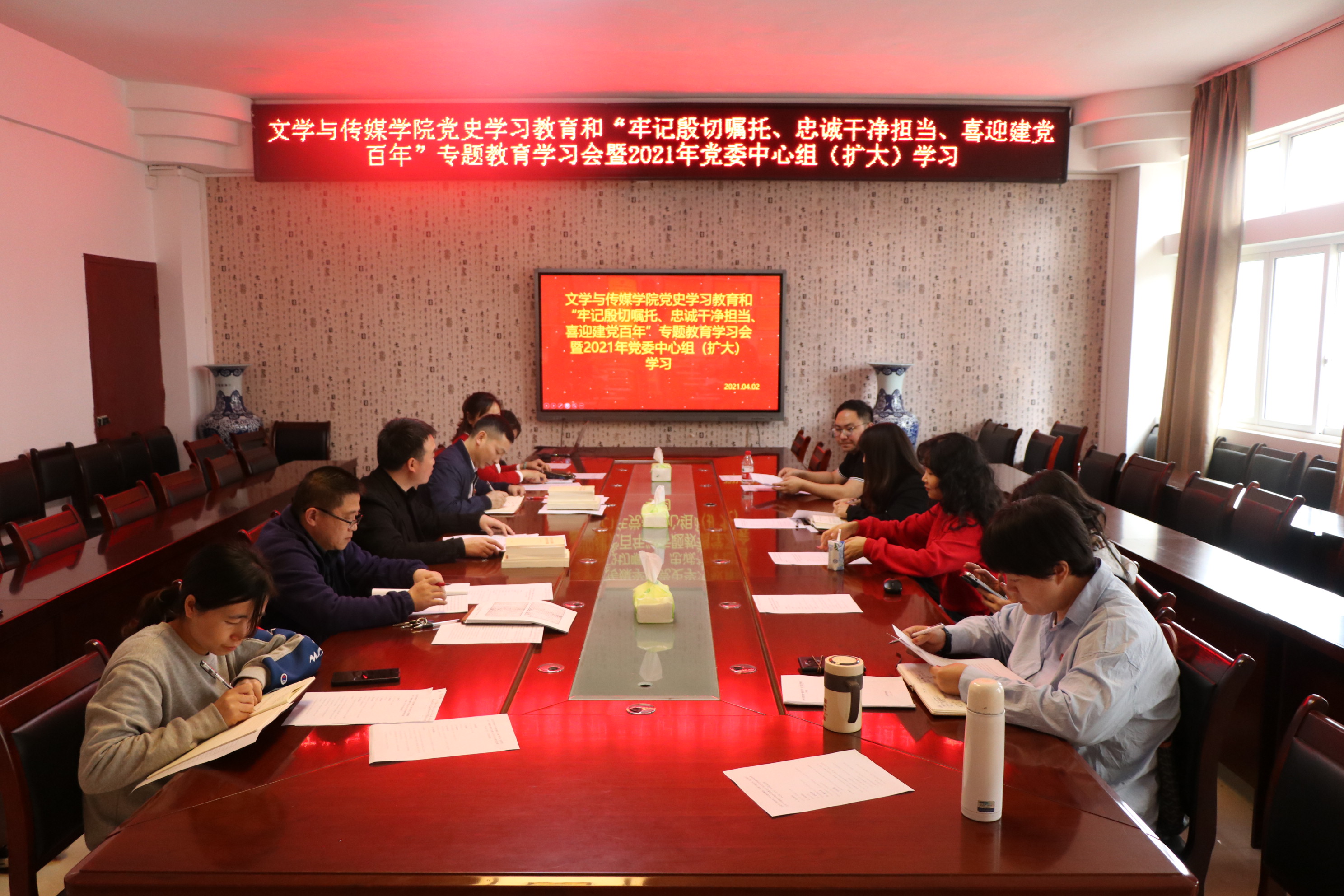 于4月2日下午在明理楼313会议室开展党史学习教育和“牢记殷切嘱托、忠诚干净担当、喜迎建党百年”专题教育学习会暨2021年院党委中心组(扩大)学习会议。学院党委委员、工会主席、团委书记、办公室主任、各党支部书记和各系主任、院督导组成员参加会议,会议由学院党委副书记王军主持。