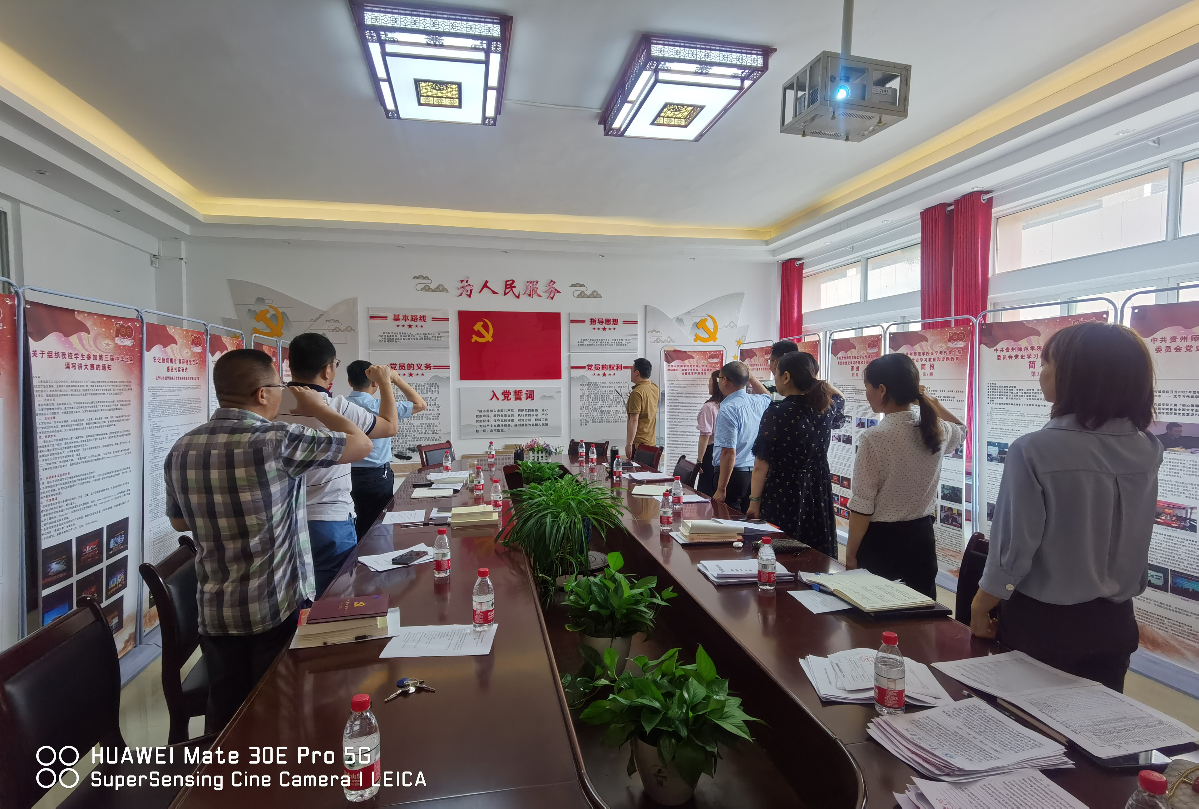 会议最后,全体党员面向鲜红的中国共产党党旗,重温了入党誓词。