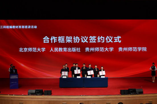 相关教师参加活动,并代表学校与北京师范大学、人民教育出版社、贵州师范大学共同签署合作框架协议。