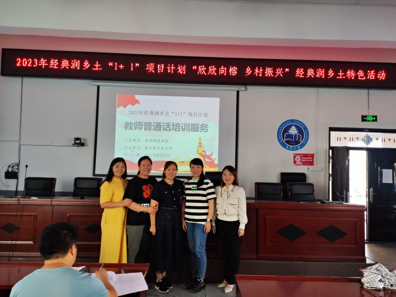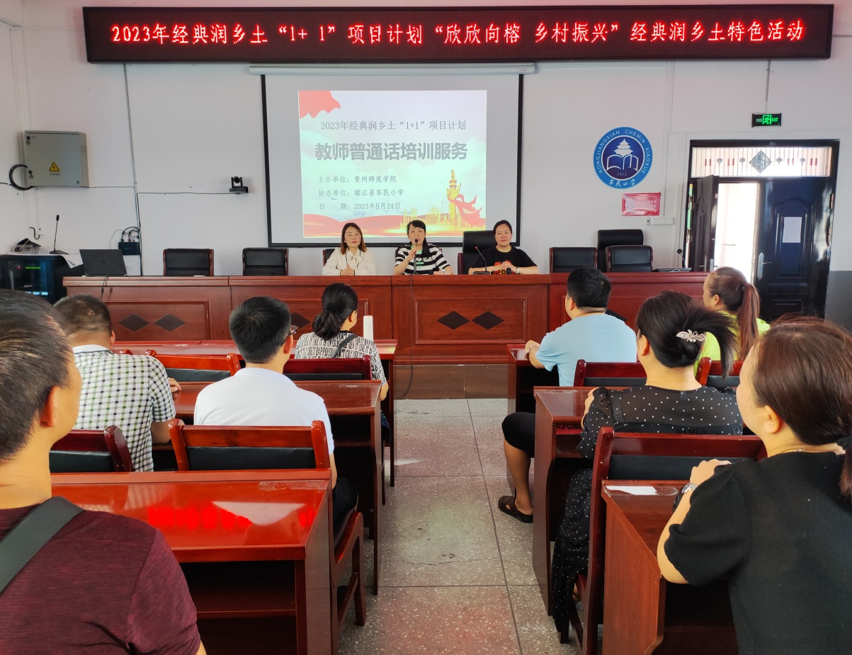 充分发挥贵州省语言文字推广基地的作用,由学院副书记陈亦桥带队,一行五人围绕2023年经典润乡土“1+ 1”项目计划要求,面向国家乡村振兴重点帮扶县——“榕江县”,开展“欣欣向榕 乡村振兴”经典润乡土特色活动。