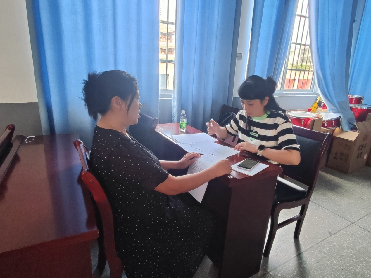 普通话测评员郑颖、吴科玉、蹇登绯为当地车民小学老师开展提升教师普通话水平能力的一对一指导活动。活动现场老师们针对学员的普通话语音、词汇、语法及口头表达等薄弱环节进行专项指导。老师们对症下药,通过现场示范、练读等多种方式对学员进行辅导和训练,提升了学员正确使用国家通用语言文字的意识、能力及说好普通话的信心。