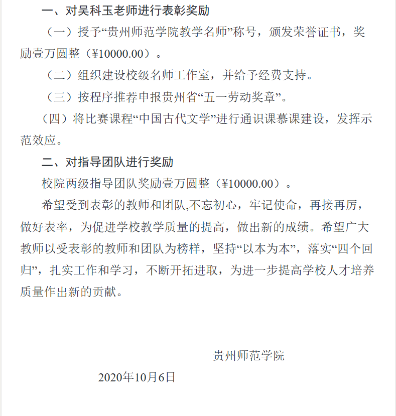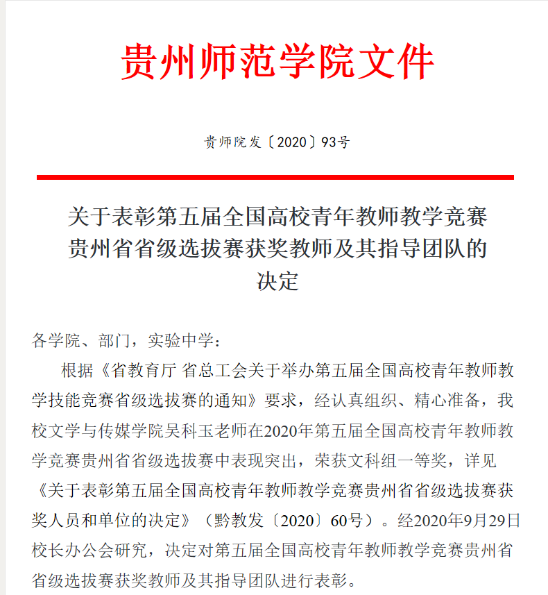 关于表彰第五届全国高校青年教师教学竞赛贵州省省级选拔赛获奖教师及其指导团队的决定