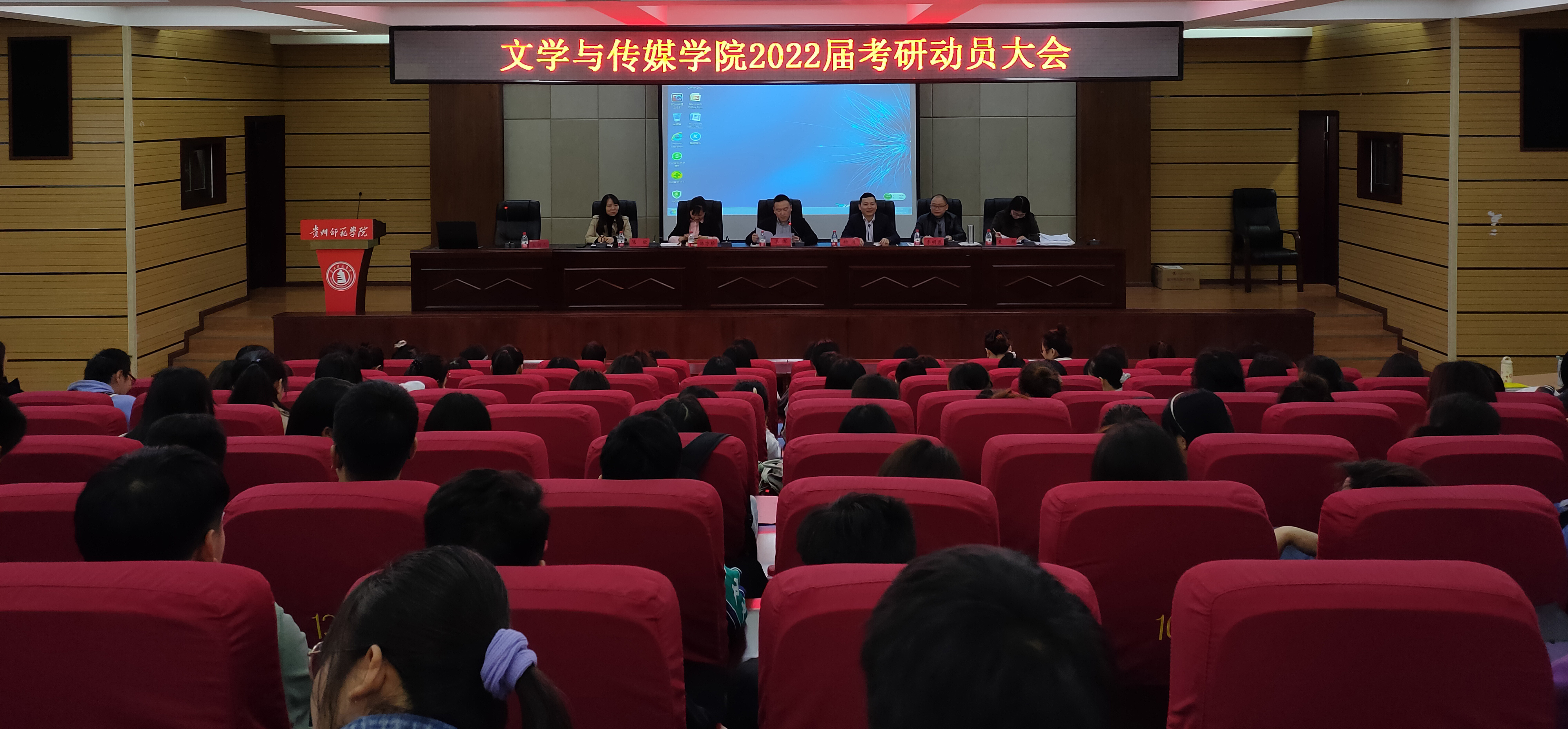 于4月26日下午在明辨楼二楼道德讲堂开展2022届考研动员大会,学院党委副书记王军(主持工作)、党委副书记陈亦桥、学院教师李明勇、陈欣、黄琼、银兴贵出席活动,2022届全体学生和2021届考研已被录取的学生参加会议。动员大会由学院副院长杨波(主持工作)担任主持人。