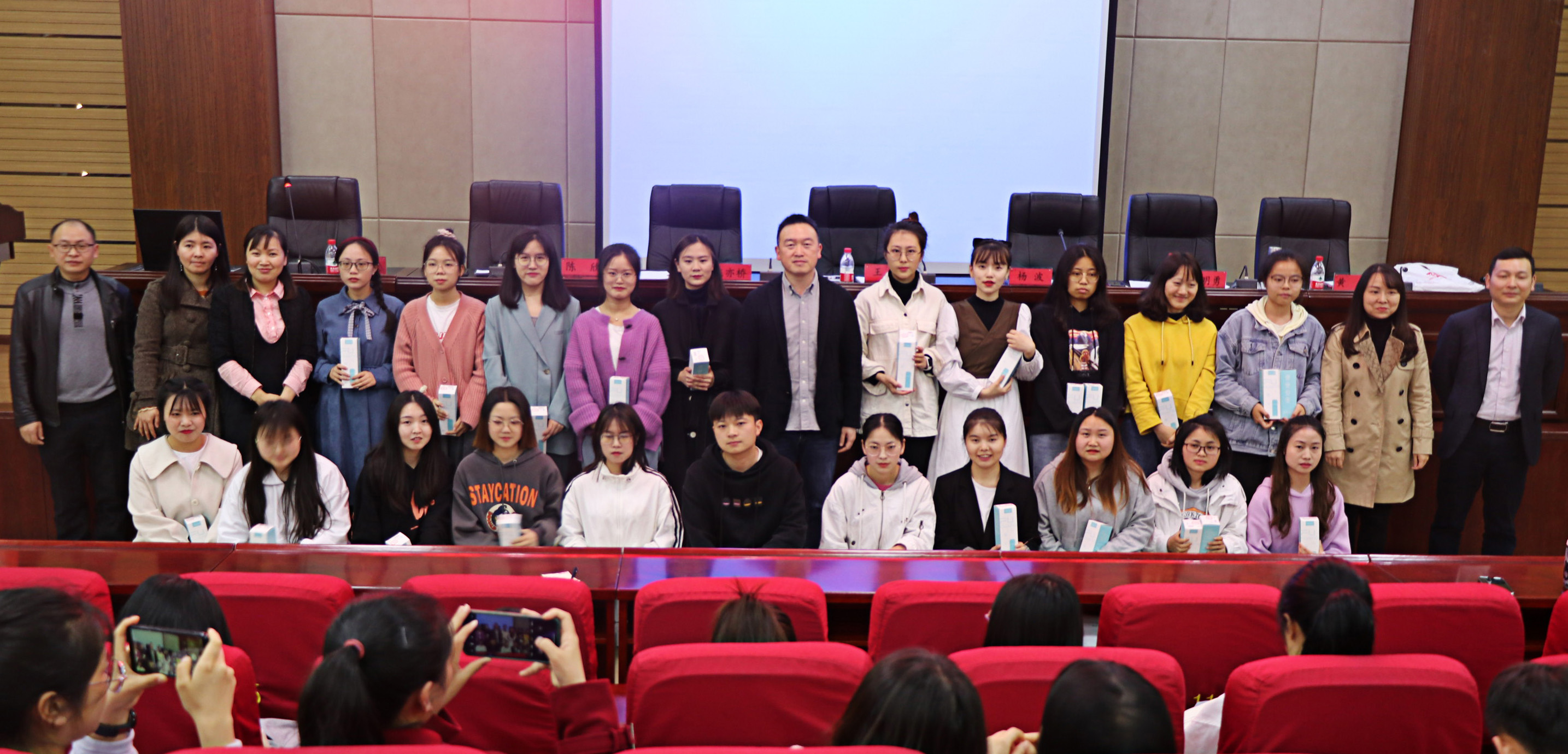对2021届考取研究生学生的表彰决定,并对获奖者进行颁奖。2017级汉语言文学专业代表崔荞花、2017级汉语国际教育专业代表余杰、2017级广播电视学专业代表闵丹分别分享了自己的考研经验,就如何选择目标院校、选择专业、备考规划等几个方面的内容进行了详细的介绍。