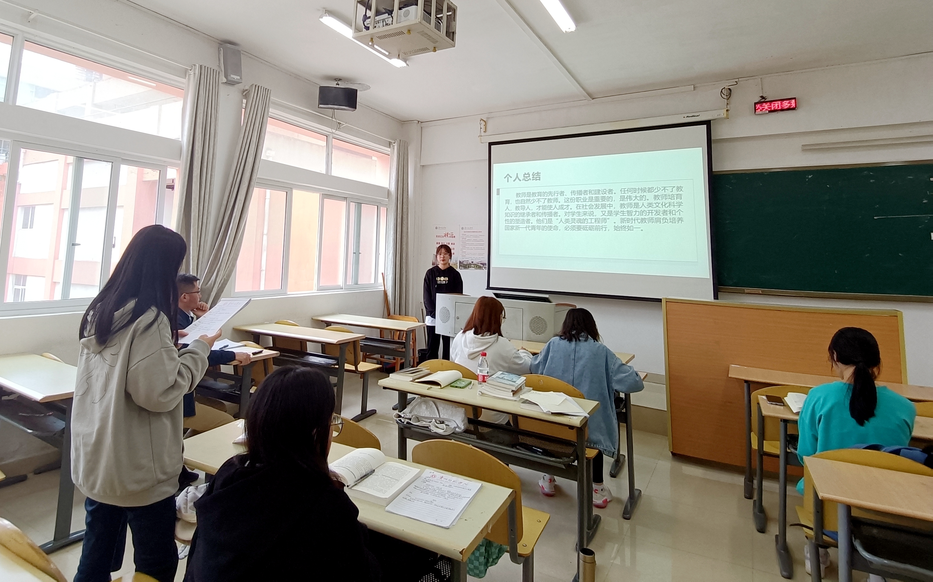 2021级汉语言文学专业十名“优师计划”师范生在明辨楼304教室开展第四期“青苗读书会”。本期读书会主题为“薪火传承守初心,凝心聚力担使命”,马智忠老师莅临现场指导。此次读书会以马智忠老师为同学们布置的《点亮生命灯火》一书展开,同学们对书中于漪先生所写的内容进行总结,进行心得汇报,互相点评,以改不足,扬长避短。